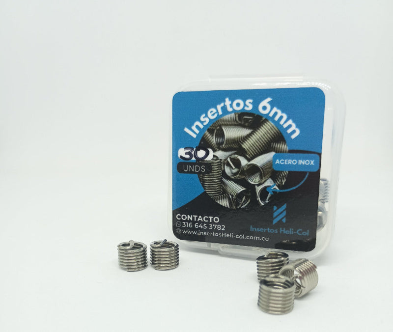 Repara y refuerza roscas dañadas con nuestros insertos roscados de 6mm de insertos Heli-Col, fabricados con acero inoxidable de alta calidad que garantiza resistencia, precisión y una vida útil prolongada en todas tus aplicaciones mecánicas e industriales.
